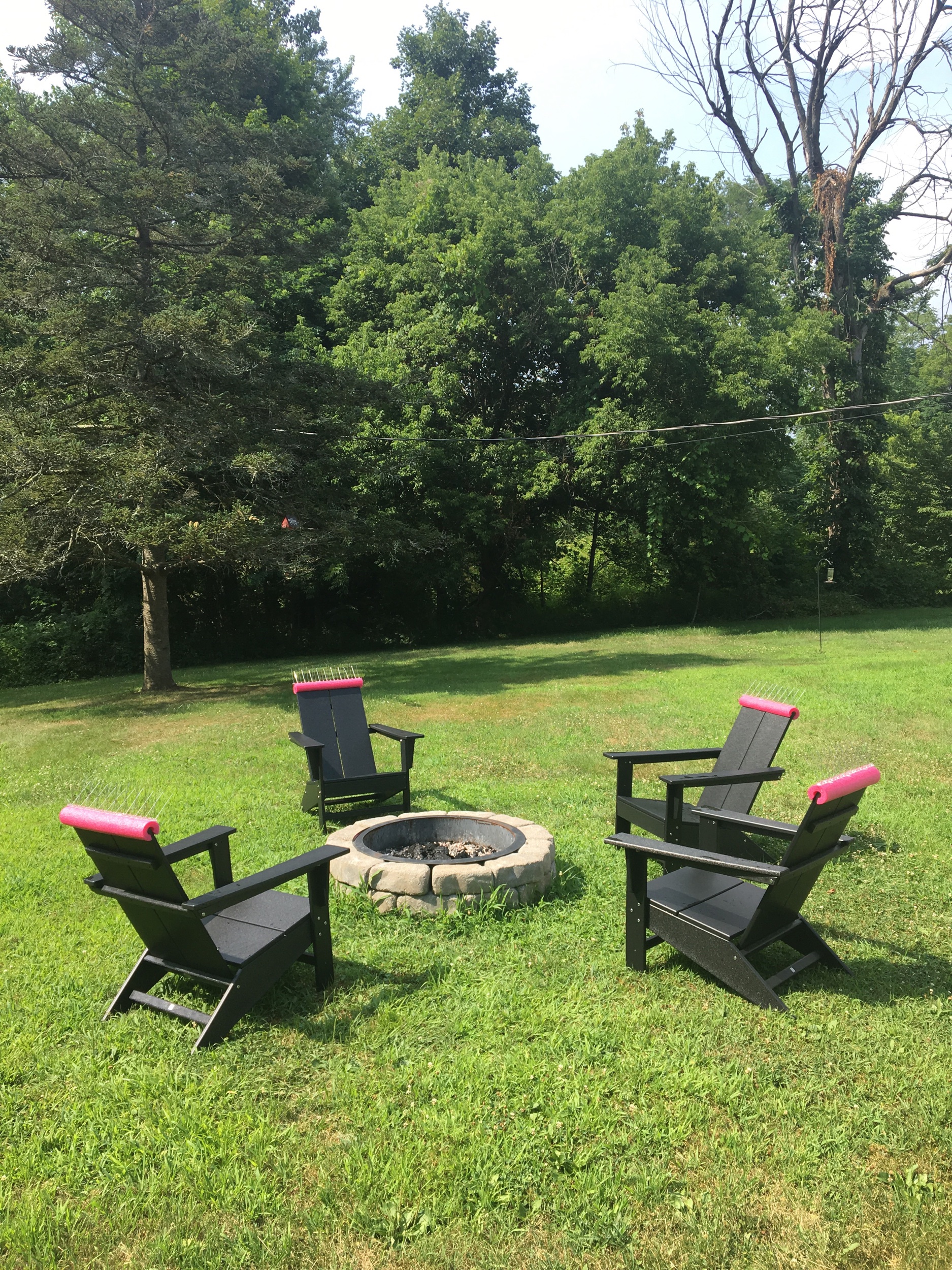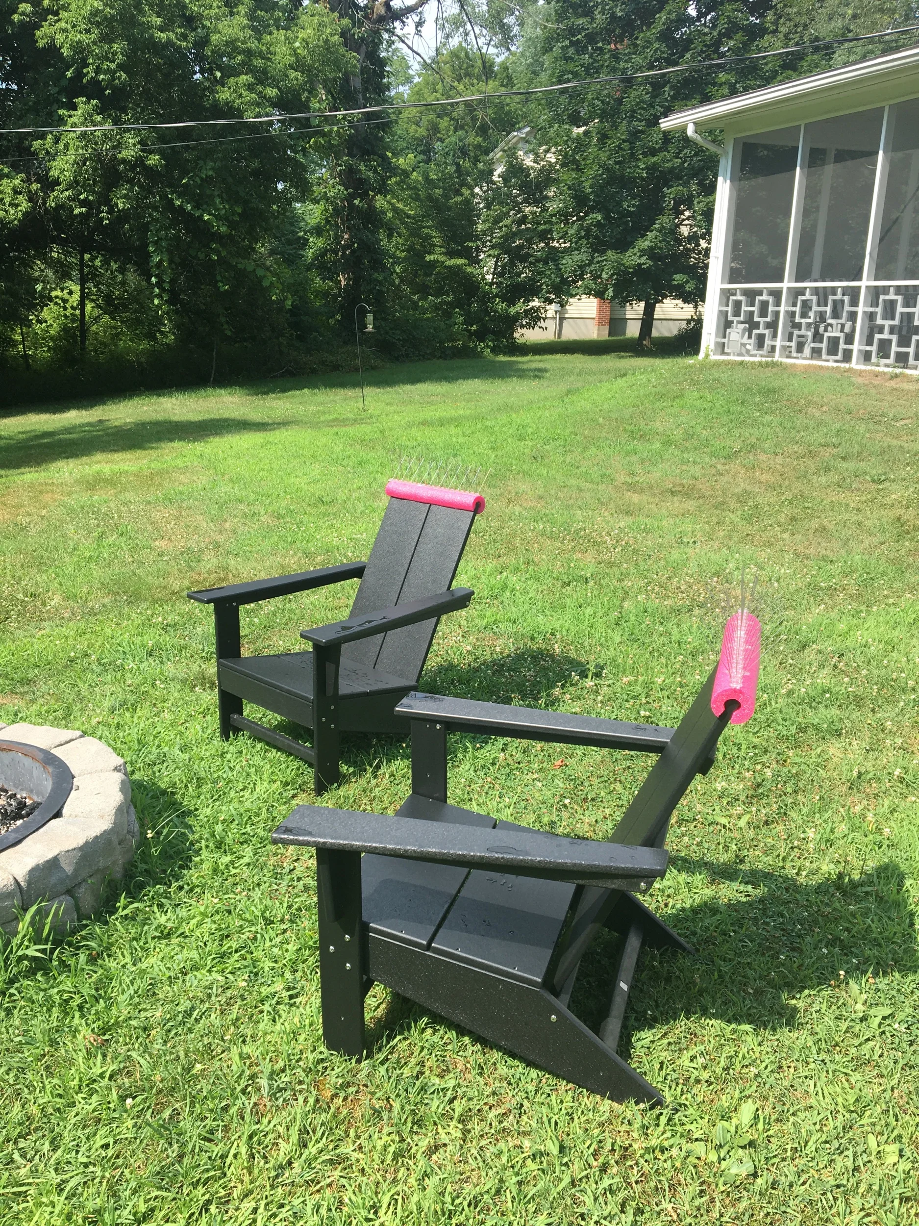 Though this is project is super-specific for our Adirondack chairs, I’m sure it can be modified for other outdoor furniture/decor situations that need a little extra protection…shoutout to hubby & engineer extraordinaire, Dylan, who WERKED this whole thing out from start to finish…now y’all, here’s to a bird shit free remainder of summer! holla!
