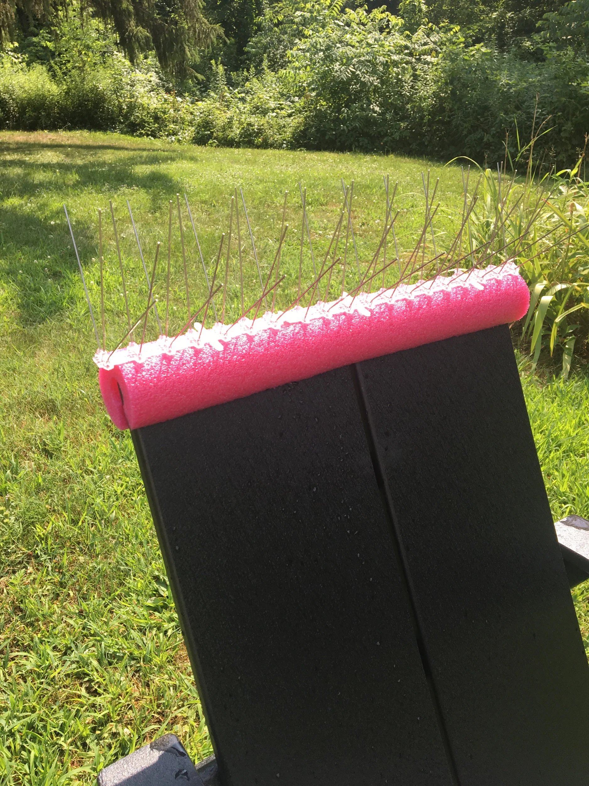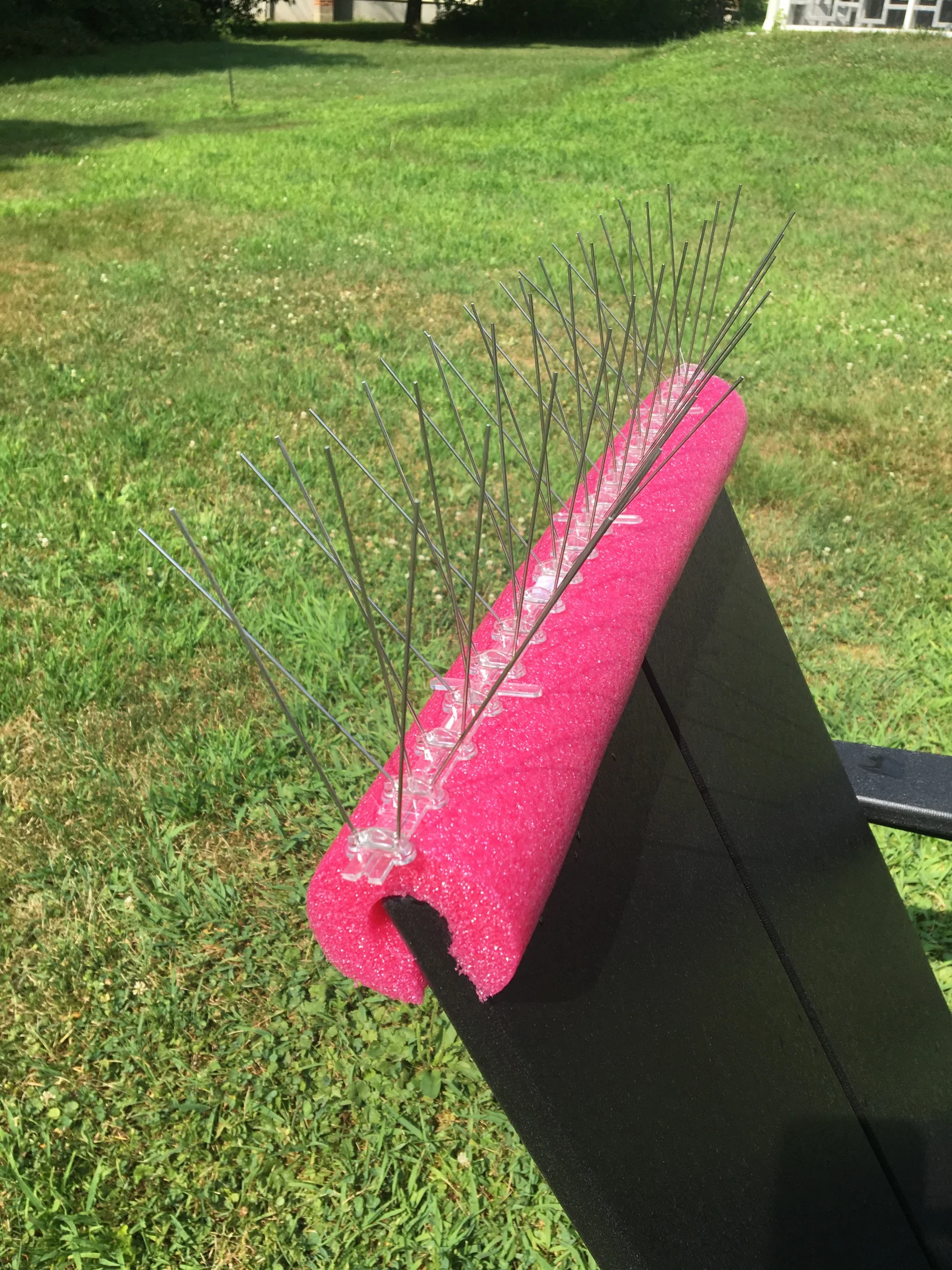 Y’all aren’t seeing things here. Those are indeed modified pool noodles that have bird spikes sewn to the tops. Not only were these relatively easy (& cheap) to diy, I am happy to report that we’ve basically had zero bird bombs since completing this project! Oh & aggro gray bird seems to have moved elsewhere to find a toilet…